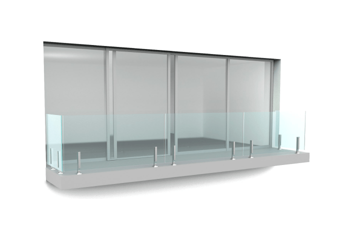Этот вариант лучше всего подходит для узких балконов, где важен каждый сантиметр. Стекло крепится к боковой части перекрытия с помощью специальных точечных коннекторов. Такая установка позволяет избежать потери полезной площади балконов.